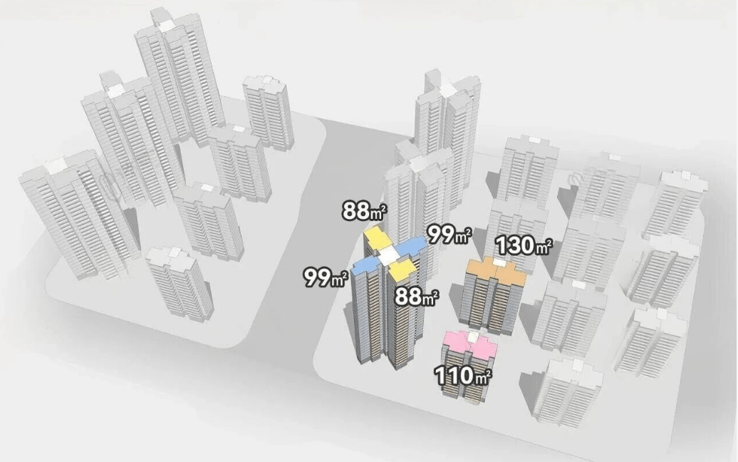 越秀阅璟台在产品设计上,充分考量了不同家庭结构的居住需求,推出了塔楼和板楼两种不同类型的产品,以适应市场的多元化选择。其中,塔楼主推88平方米三房和99平方米3+1房户型,采用了经典的2梯4户设计。这种设计在保证居住密度的同时,最大限度地提高了土地利用效率,使得总价门槛更加亲民,698万元起即可入手,对于刚需家庭来说极具吸引力。尽管是塔楼结构,但设计师巧妙地通过布局优化,实现了全南向的朝向,确保了每一户都能享受到充足的阳光照射。